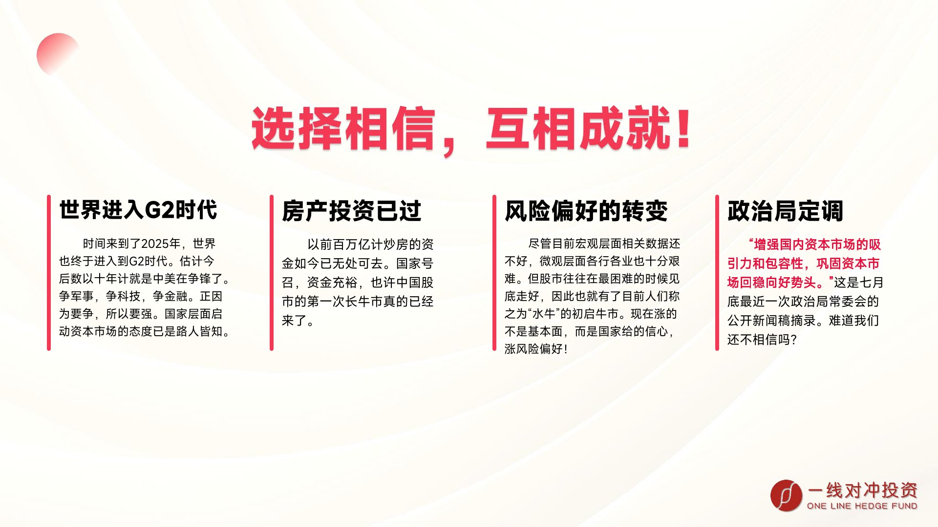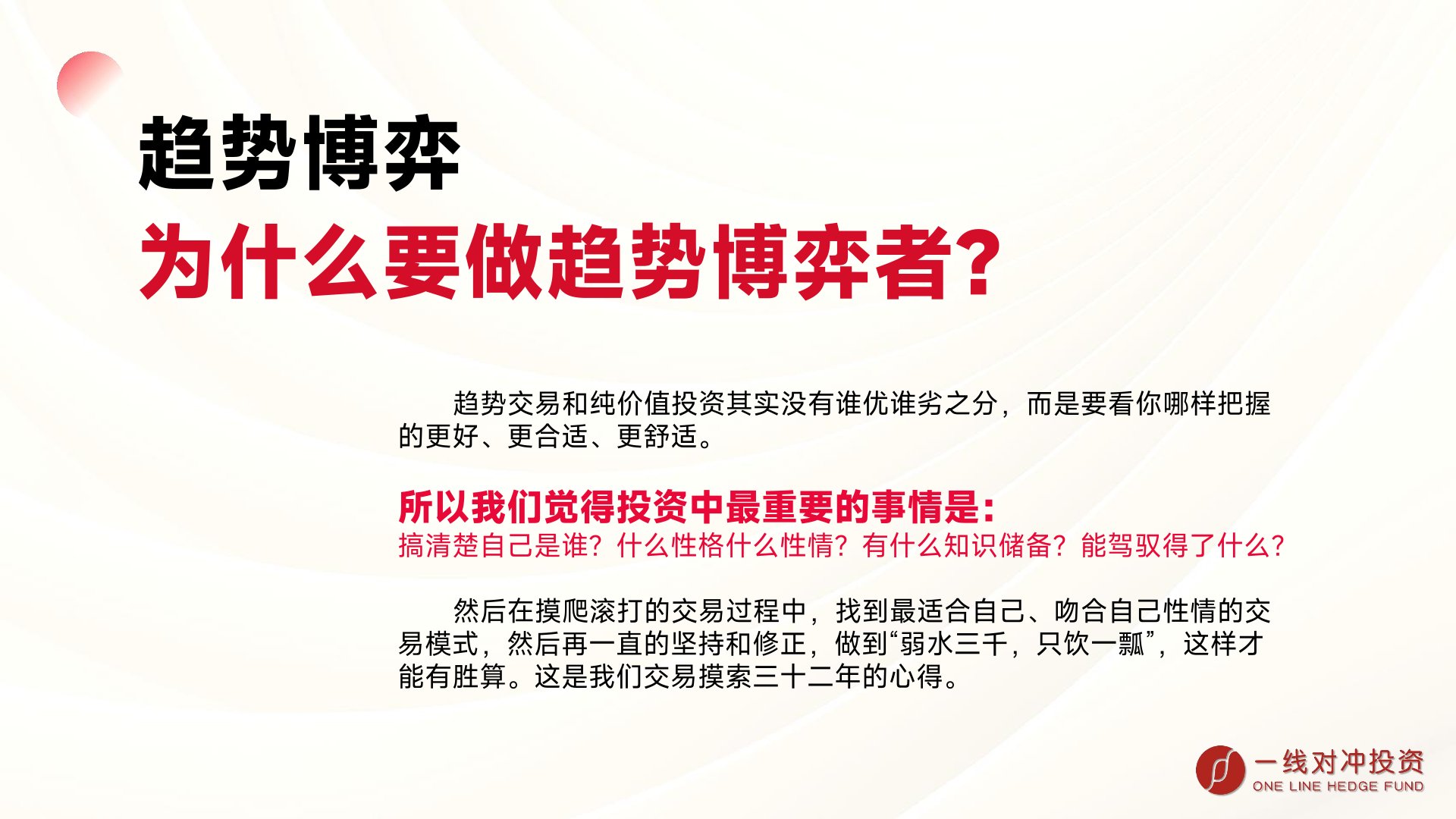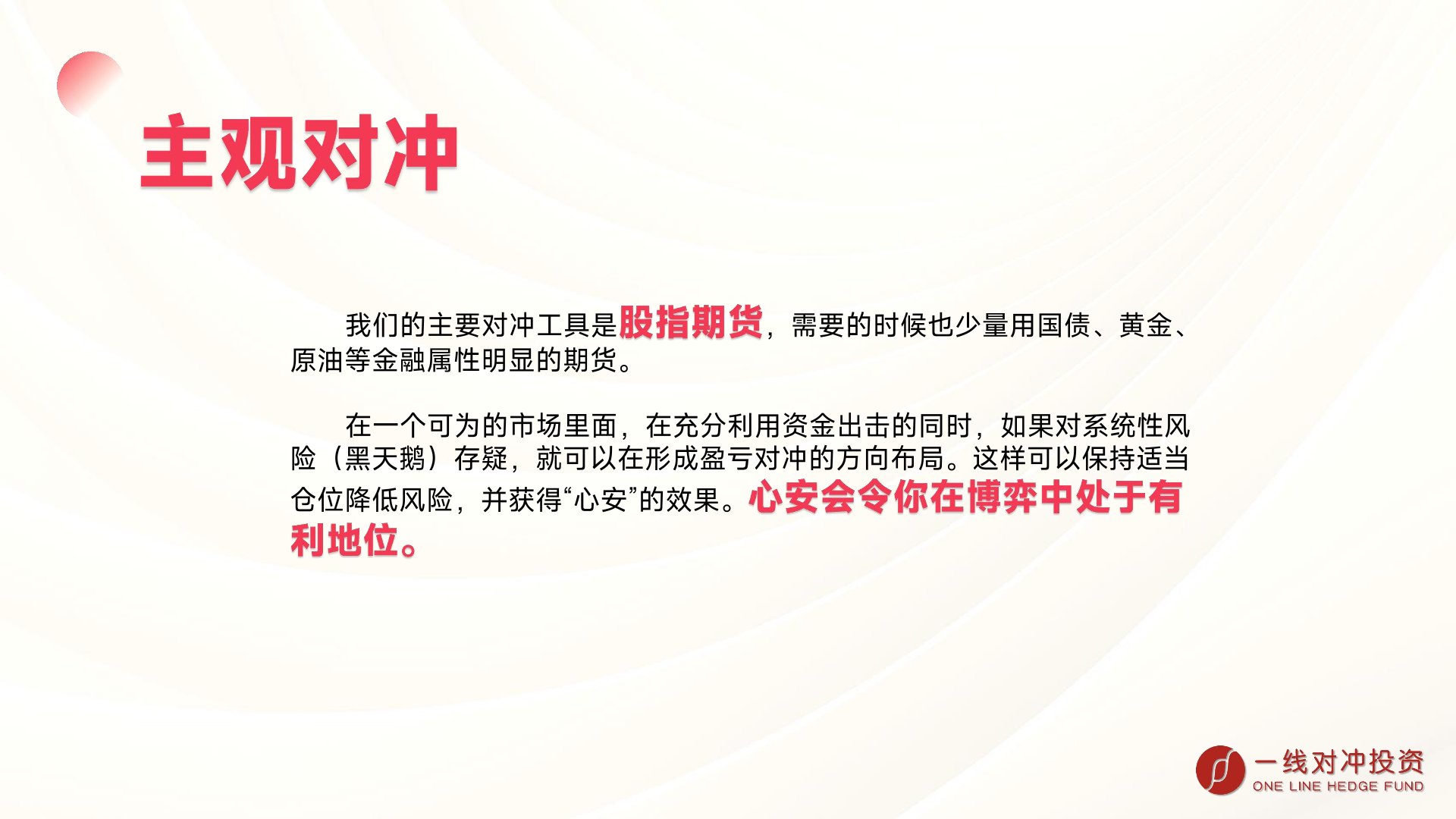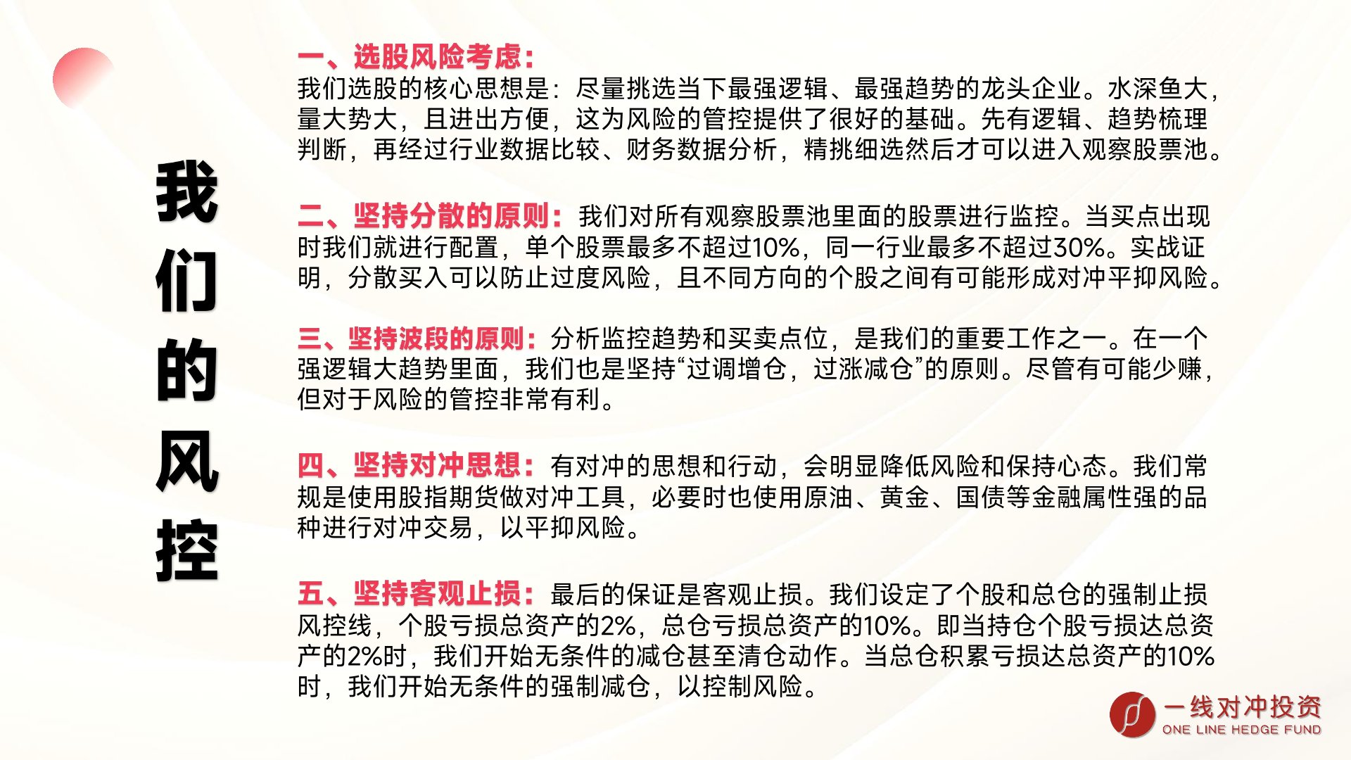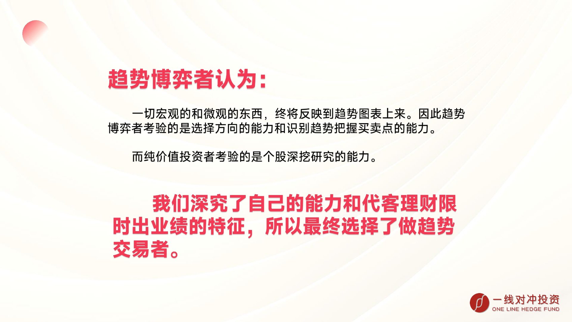 一线对冲提请投资者注意,证券投资有风险。根据《证券投资基金法》、《私募投资基金监督管理暂行办法》、《私募投资基金募集行为管理办法》等,参与私募投资的人士应为具有一定的投资风险,即能够识别、判断和承担相应风险,和追求长期稳定投资回报的个人以及机构投资者。浏览本公司网站的人士可能来自更广阔的区域,但登入本网页的人士均出于主动,因而有责任遵守适用于当地的法规。登入网站内页即表示登入者同意其已阅览本网页的所有部分,包括任何法规或法规注。